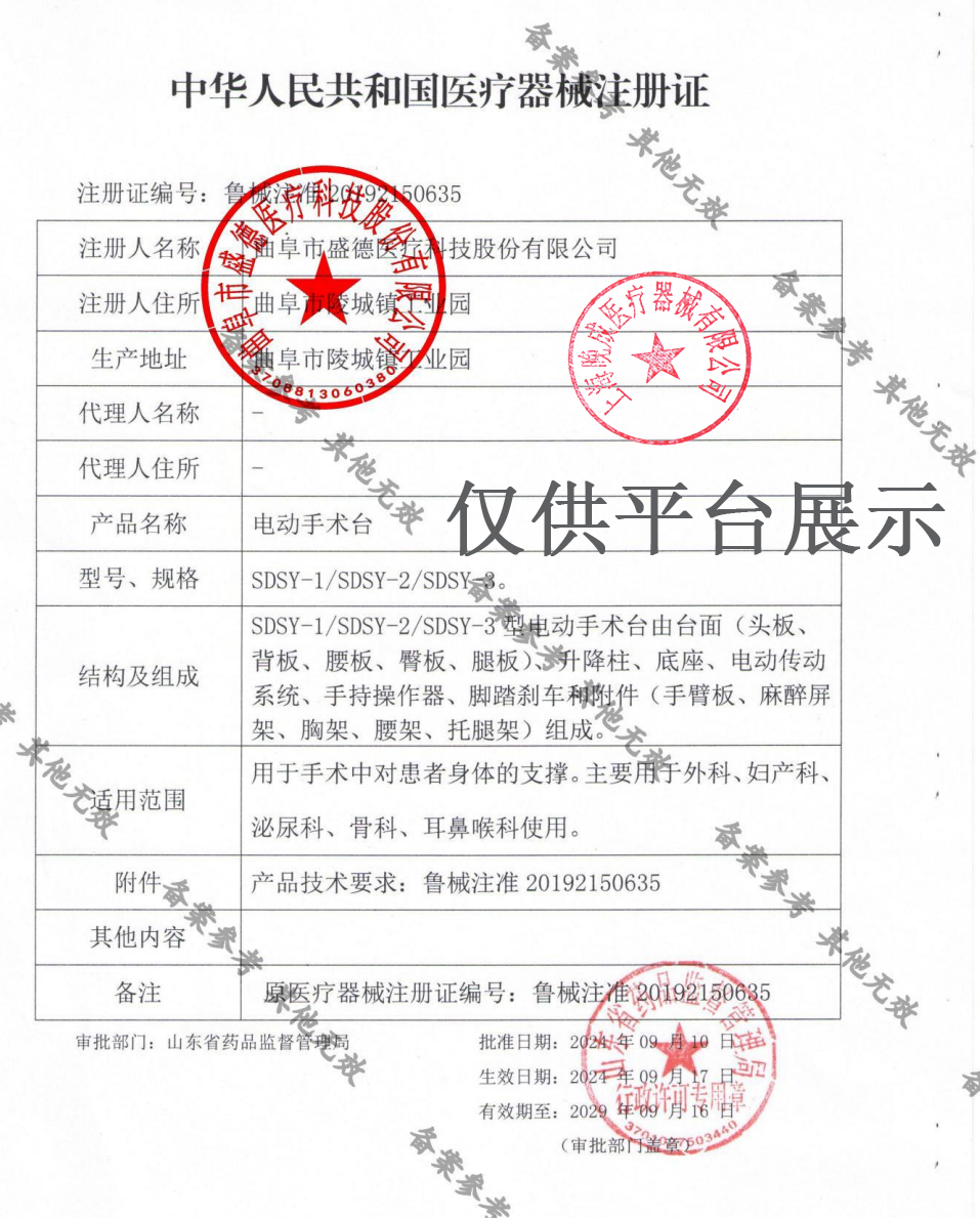 注冊(cè)證號(hào):魯械注準(zhǔn)20192150635
