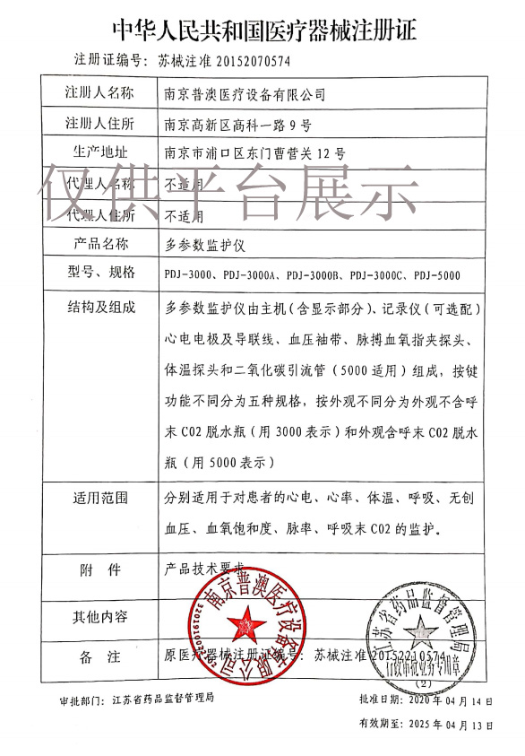| 產品名稱 : | 南京普澳多參數(shù)監(jiān)護儀PDJ-3000型 |