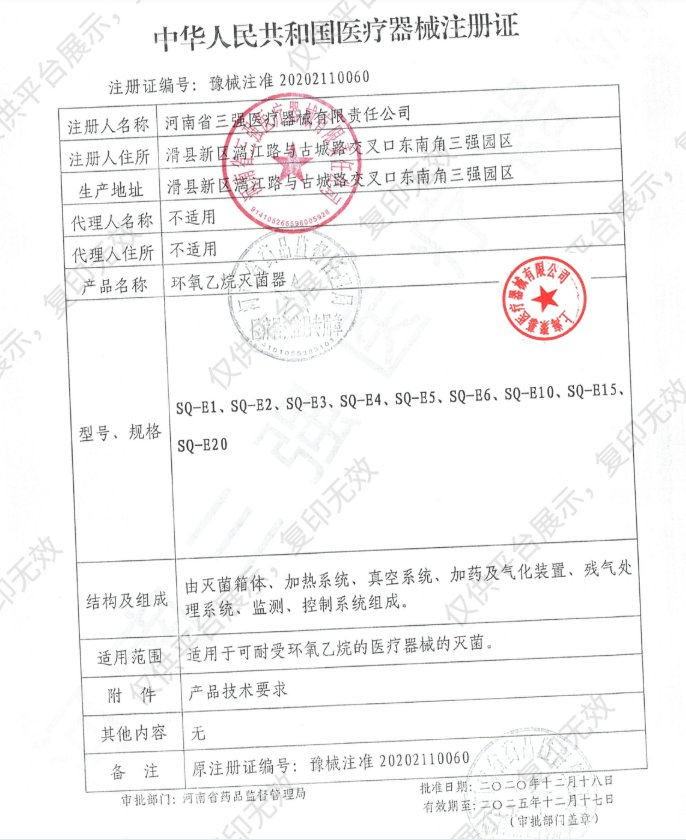 | 產(chǎn)品名稱 : | 三強環(huán)氧乙烷滅菌器SQ-E10 |