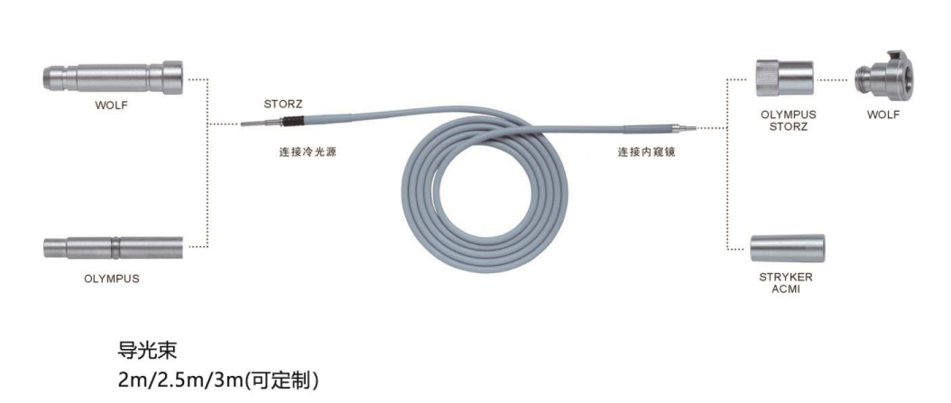 6、兼容性好:即插式光源輸出孔,導(dǎo)光束接口國際通用,可與奧林巴斯、STORZ等多品牌 光纖無縫對接。