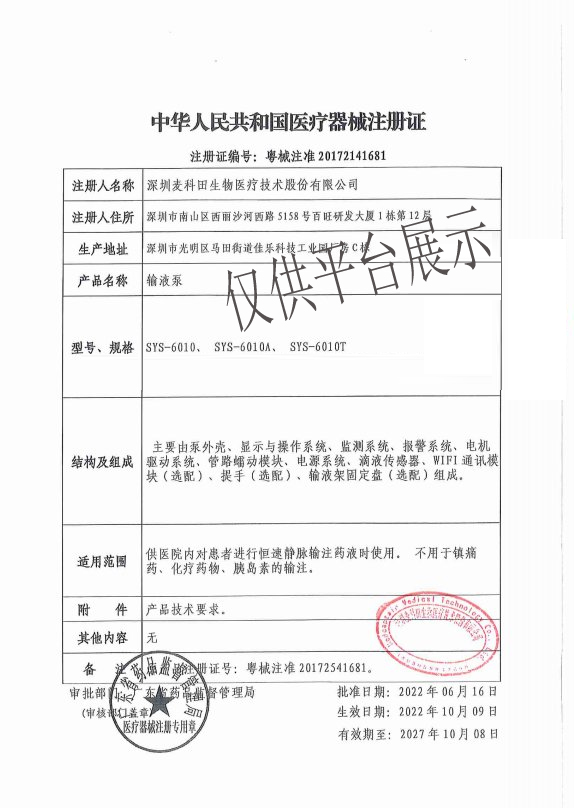 1、名稱:輸液泵 規(guī)格:SYS-6010A