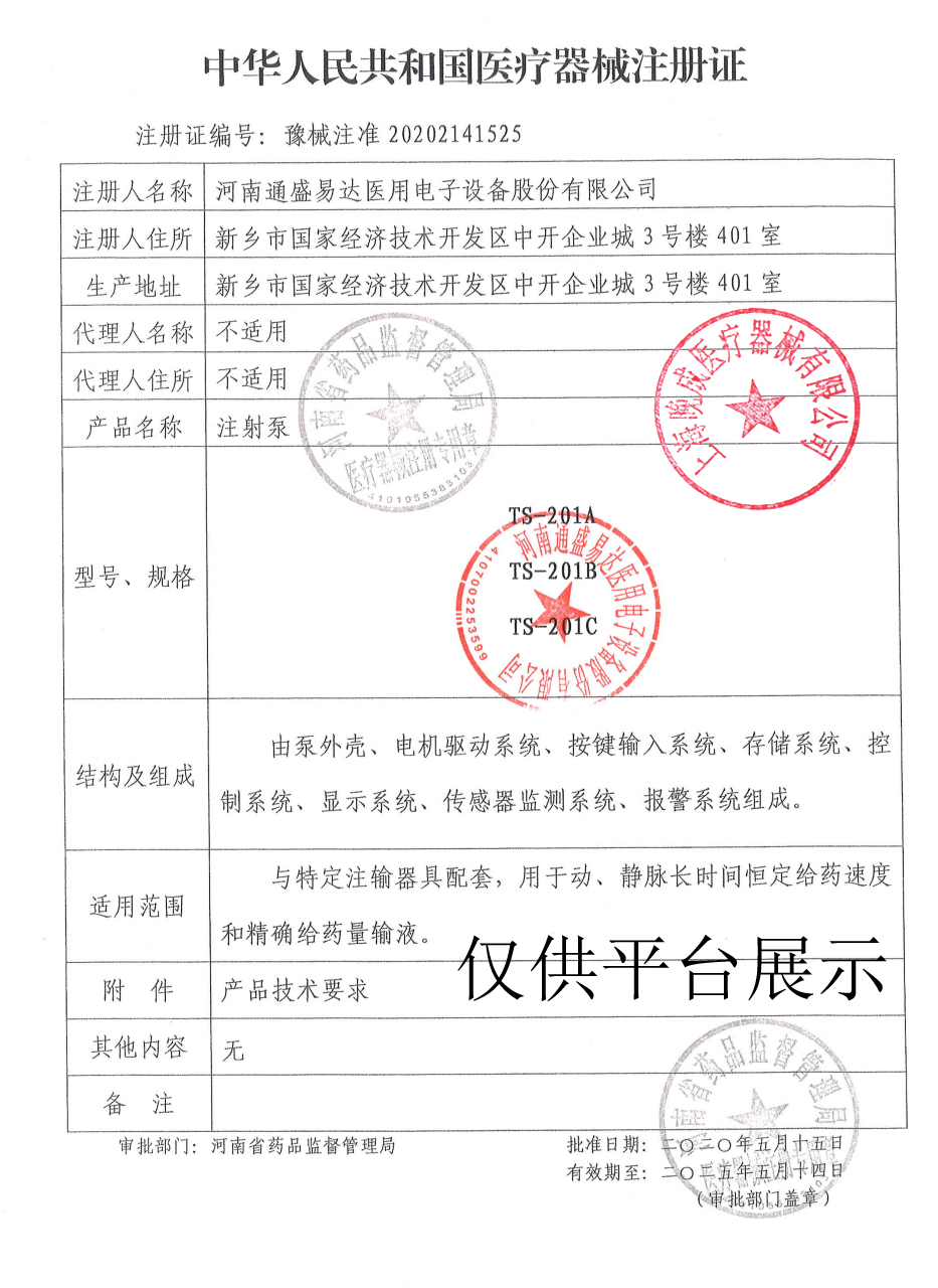 醫(yī)械網(wǎng)是一家提供通盛易達(dá) TS-201B雙通道微量注射泵價(jià)格、參數(shù)介紹等信息的展示平臺(tái),為您提供優(yōu)質(zhì)的通盛易達(dá) TS-201B雙通道微量注射泵產(chǎn)品,上海晚成醫(yī)療器械有限公司專注于各類醫(yī)療器械批發(fā)及零售,聯(lián)系電話:400-006-1850。