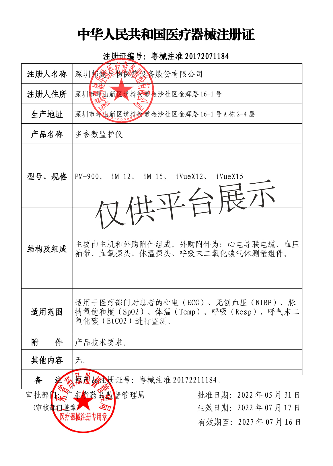| 產(chǎn)品名稱 : | 邦健多參數(shù)監(jiān)護(hù)儀PM-900 |