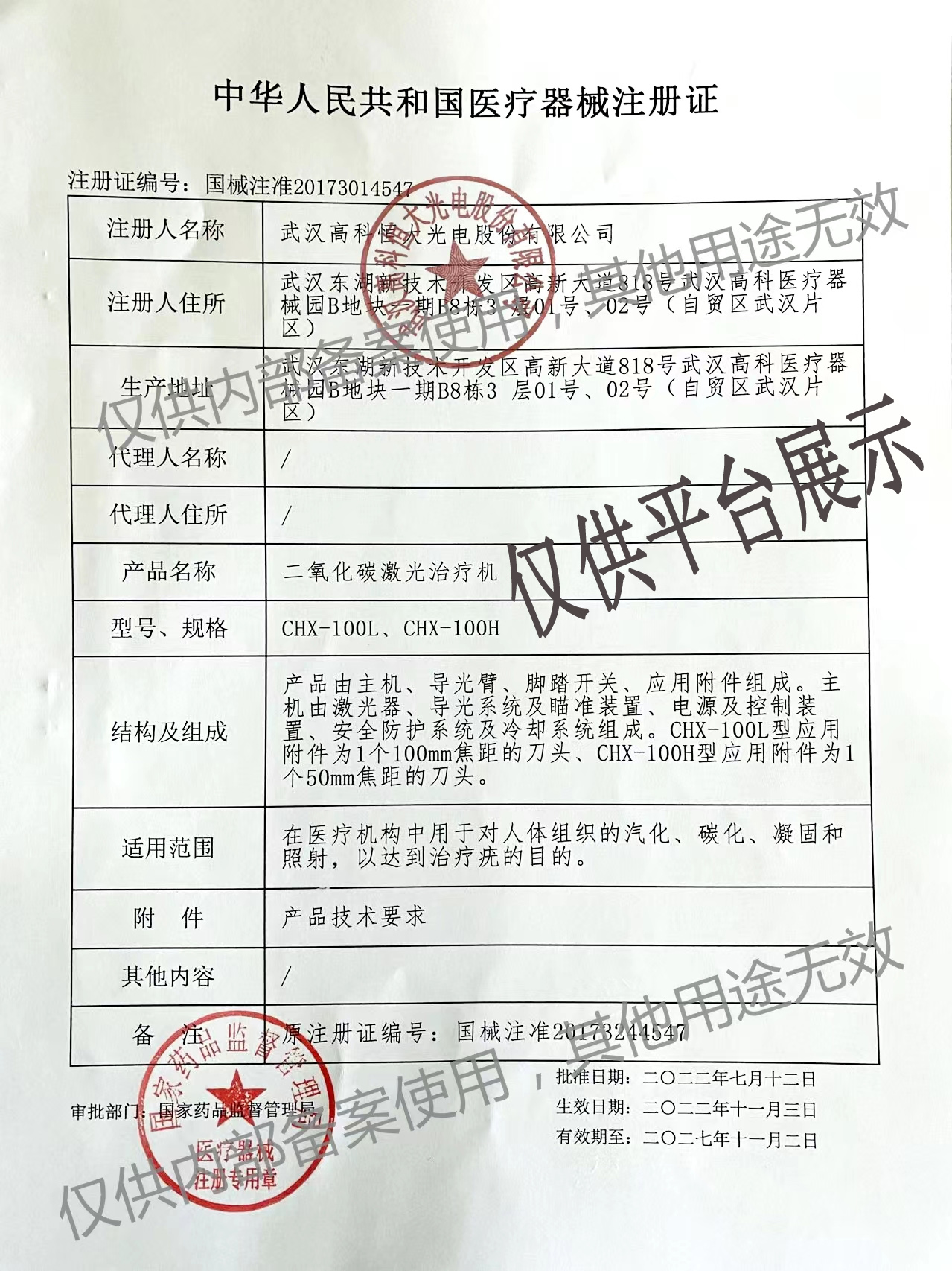 3、適用范圍:在醫(yī)療機構(gòu)中用于對人體組織的汽化、碳化、凝固和照射,以到達治